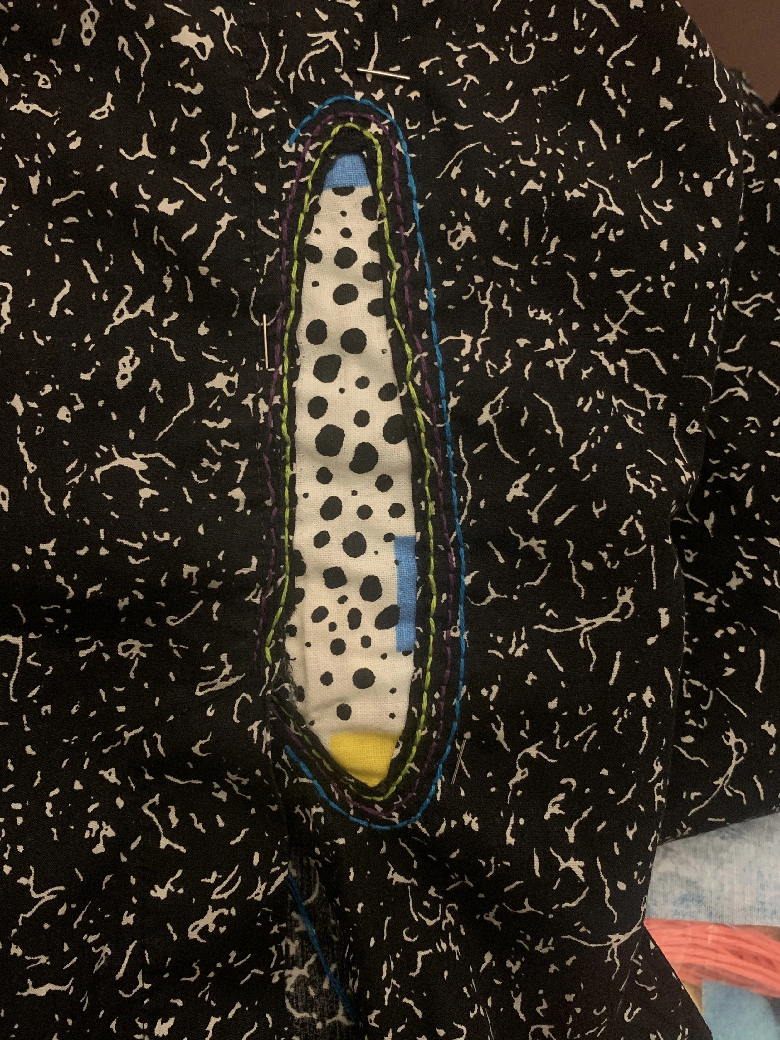 Together, myself and my dear friend Leala Rosen lead Slow-Poke Collective. Every other month we create programming for community members to finish a textile craft, all from second-hand materials. In the past this has looked like intro to embroidery, sashiko-style mending, DIY bag charms, and DIY Patches on Corporate Swag.